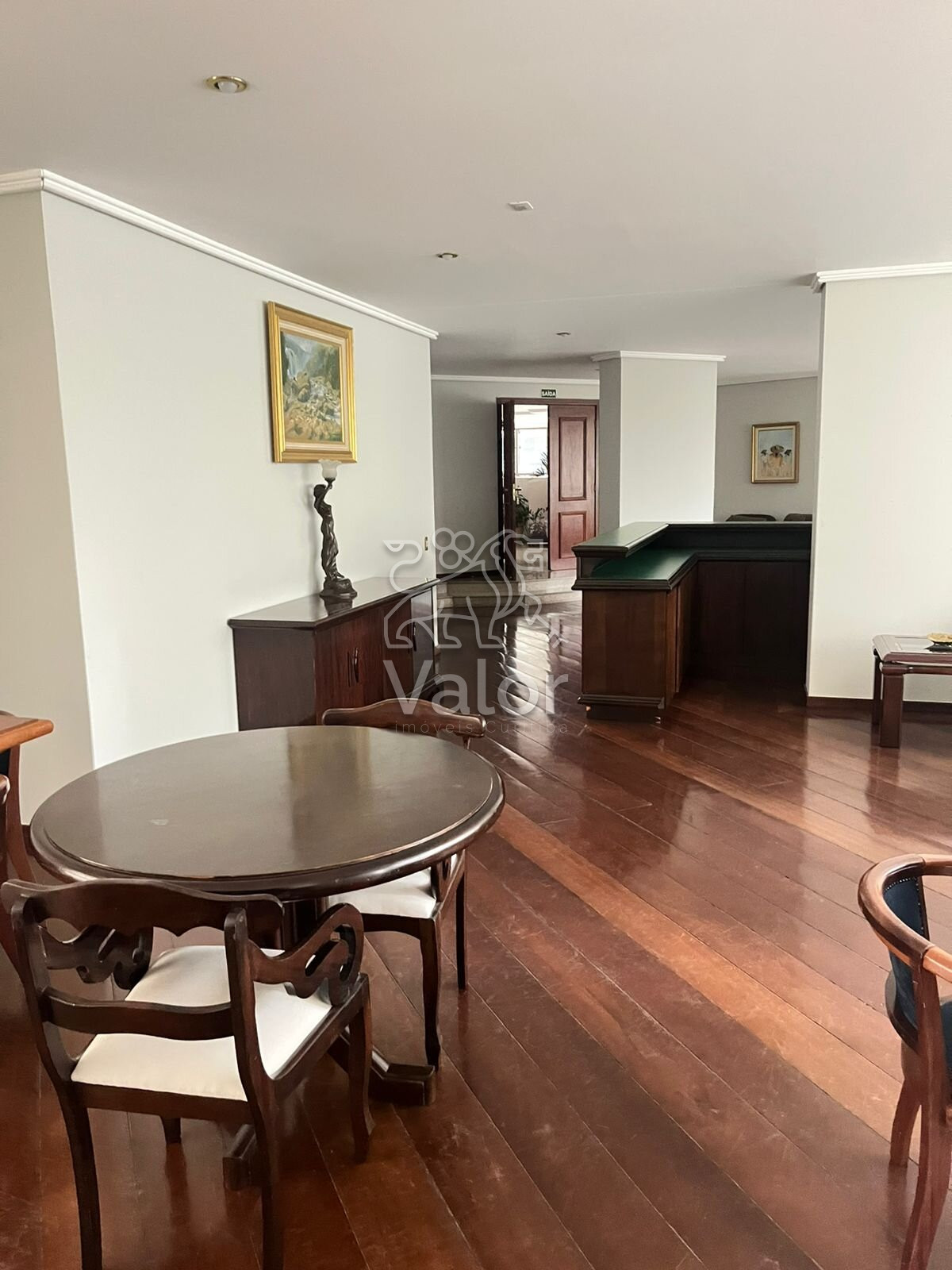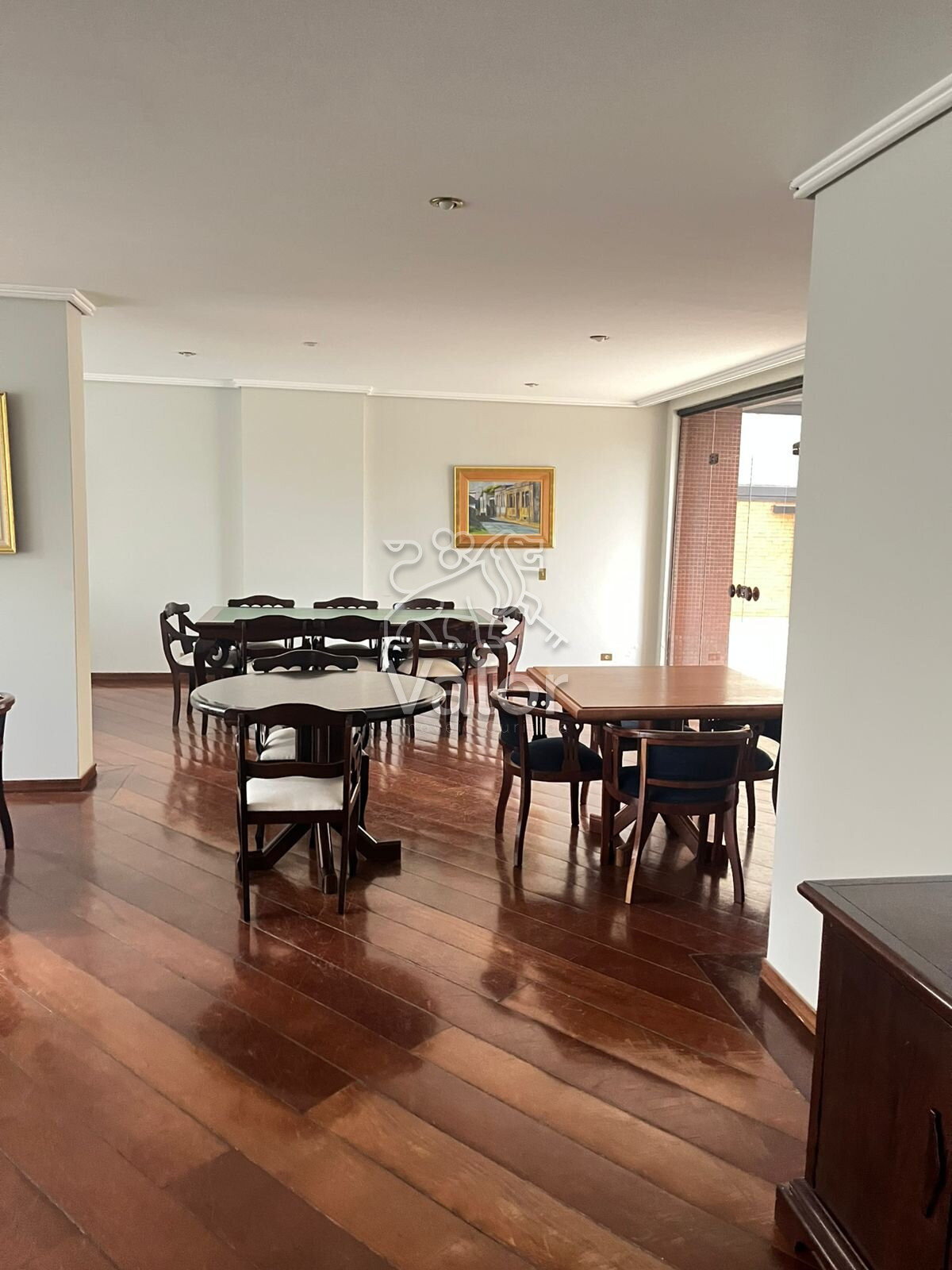 Sala principal ampla e bem iluminada, tendo a opção de tirar os móveis