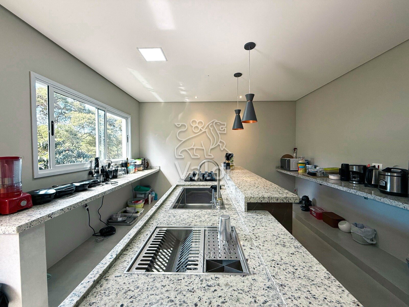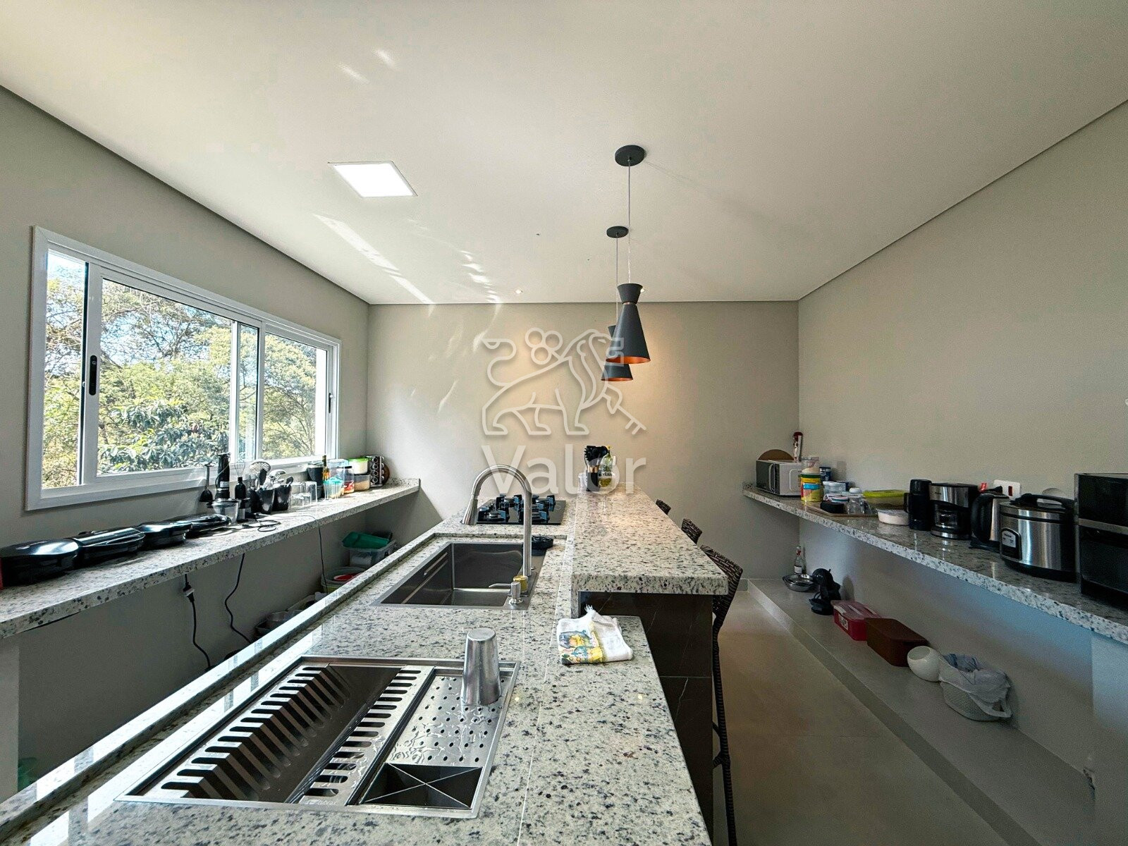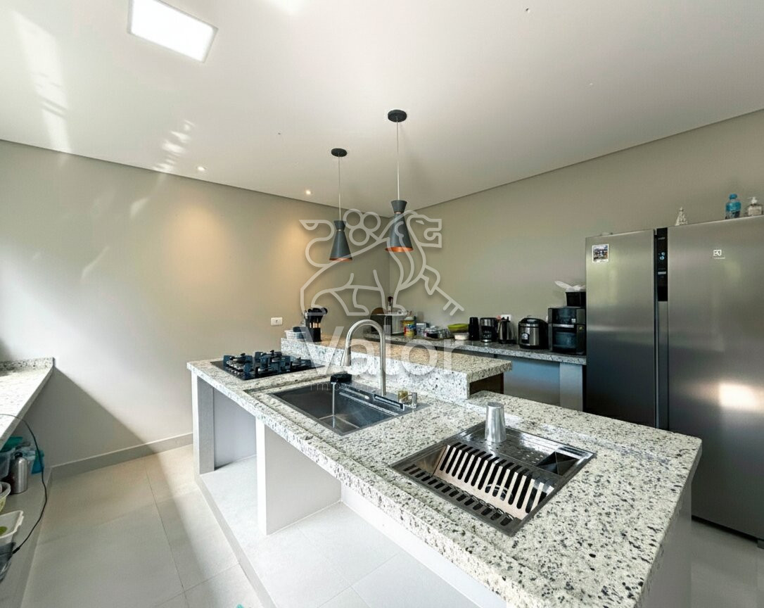 Cozinha espaçosa com móveis planejados e bancadas em granito;